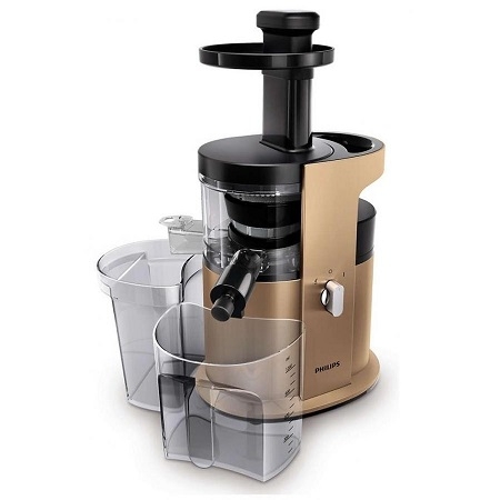 Với máy ép thường, sử dụng lưỡi dao với tốc độ cao (1.500 đến 2.500 vòng/phút) để mài nhỏ hoa quả và ép nước ra khỏi bã. Tốc độ quay cao sinh ra nhiều nhiệt làm đứt vỡ các enzyme gây lãng phí đồng thời làm nước ép có màu nhạt hơn, nhiều bọt do bị tách nước và oxy hóa ngay khi gặp không khí. Máy ép trái cây tốc độ chậm Philips HR1883 chuyển động theo chiều thẳng đứng, chậm rãi với tốc độ thấp nhờ vậy mà nước ép trở nên sánh mịn, thơm và có màu đậm hơn, rất ít bọt. Tốc độ ép chậm nên nhiệt độ thấp giúp giữ lại gần như toàn bộ vitamins và enzymes.